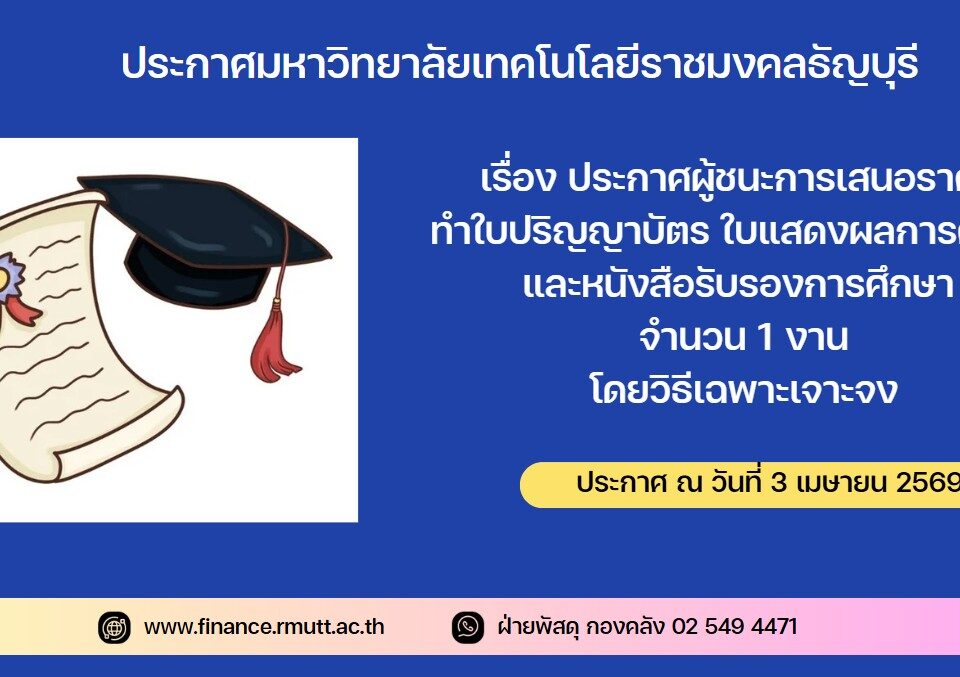 ประกาศ มหาวิทยาลัยเทคโนโลยีราชมงคลธัญบุรี เรื่อง เผยแพร่แผนการจัดซื้อจัดจ้าง ประจำปีงบประมาณ พ.ศ. ๒๕๖๙