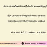 เลขที่ งปม.๒๙/๒๕๖๙ ลงวันที่ ๒๒ เมษายน พ.ศ. ๒๕๖๙ ผ่านทางระบบจัดซื้อจัดจ้างภาครัฐด้วยอิเล็กทรอนิกส์ ได้ตั้งแต่วันที่ประกาศจนถึงวันเสนอราคา ได้ที่เว็บไซต์ www.finance.rmutt.ac.th หรือ www.gprocurement.go.th