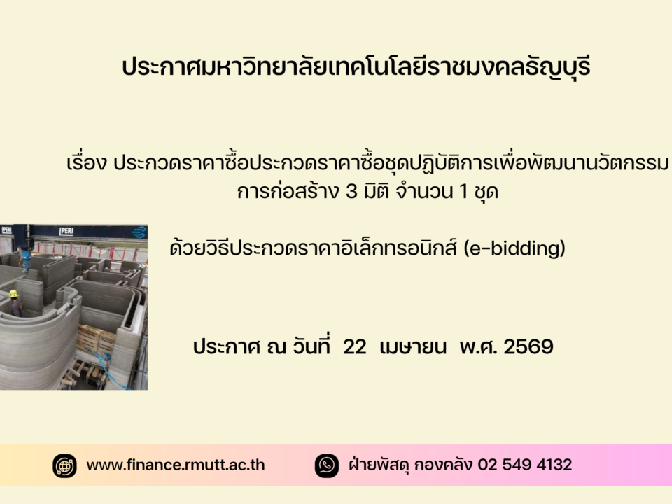 ตามที่ มหาวิทยาลัยเทคโนโลยีราชมงคลธัญบุรี ได้มีโครงการจัดซื้อวัสดุ จำนวน 13 รายการ โดยวิธีเฉพาะเจาะจง นั้น