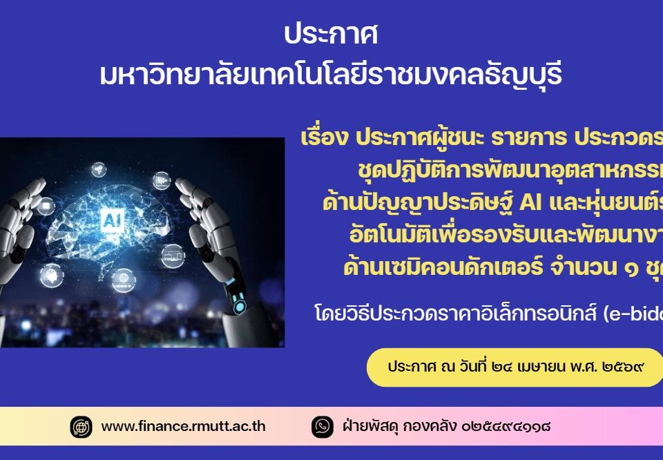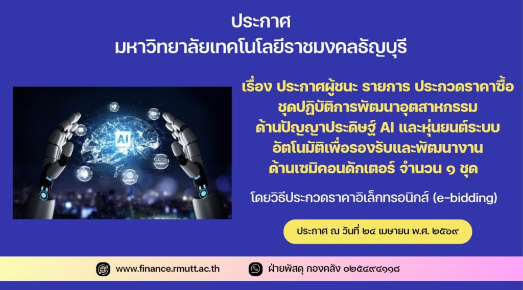 ตามประกาศ มหาวิทยาลัยเทคโนโลยีราชมงคลธัญบุรี เรื่อง ประกวดราคาชุดระบบปฏิบัติการอัจฉริยะเพื่อเพิ่มสมรรถนะการออกแบบและพัฒนาวัสดุน้ำหนักเบาสำหรับอุตสาหกรรมอากาศยานแบบยั่งยืน จำนวน ๑ ชุด ด้วยวิธีประกวดราคาอิเล็กทรอนิกส์ (e-bidding) และเอกสารประกวดราคาด้วยวิธีประกวดราคาอิเล็กทรอนิกส์ (e-bidding) เลขที่ งปม. ๑๕/๒๕๖๙ ลงวันที่ ๓๐ มีนาคม ๒๕๖๙ นั้น