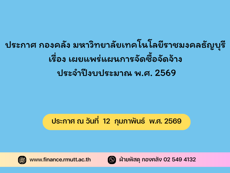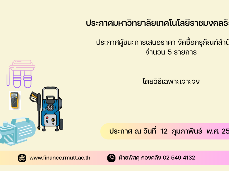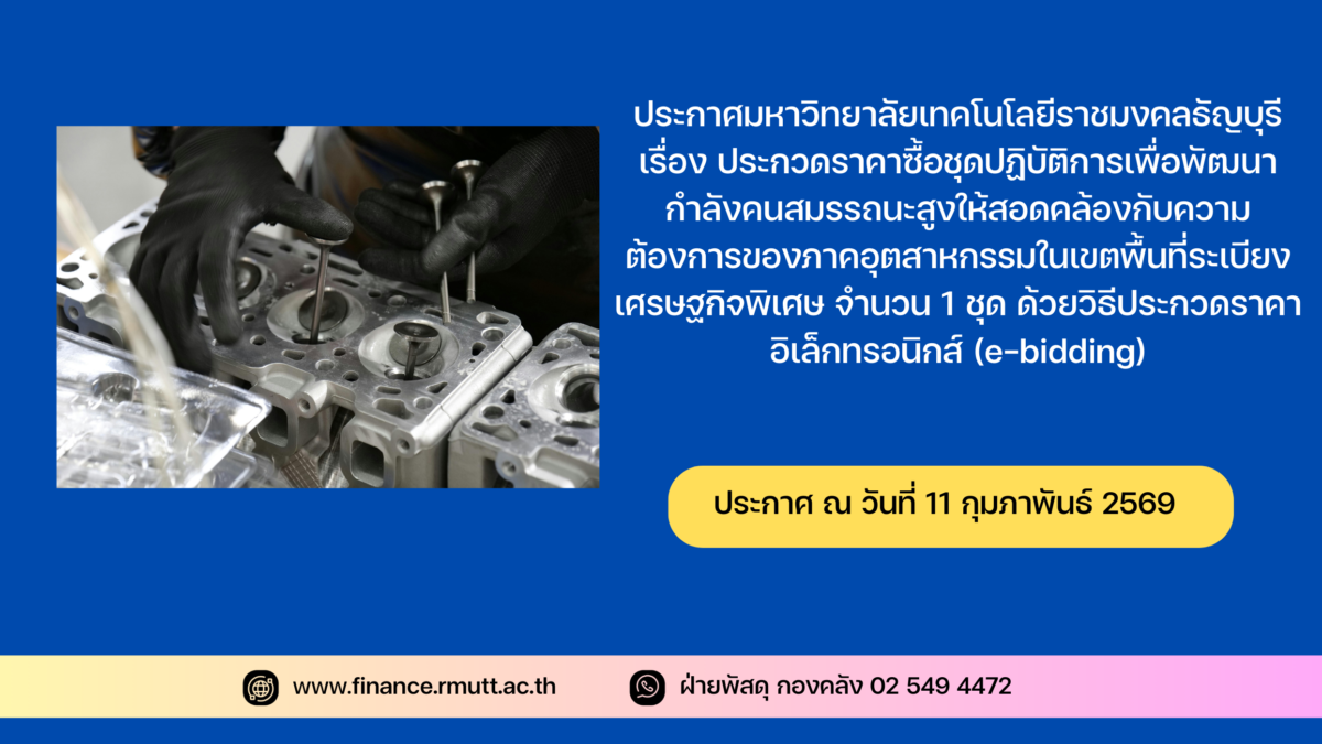 ประกาศมหาวิทยาลัยเทคโนโลยีราชมงคลธัญบุรี เรื่อง ประกวดราคาซื้อชุดปฏิบัติการเพื่อพัฒนากำลังคนสมรรถนะสูงให้สอดคล้องกับความต้องการของภาคอุตสาหกรรมในเขตพื้นที่ระเบียงเศรษฐกิจพิเศษ จำนวน ๑ ชุด ด้วยวิธีประกวดราคาอิเล็กทรอนิกส์ (e-bidding)