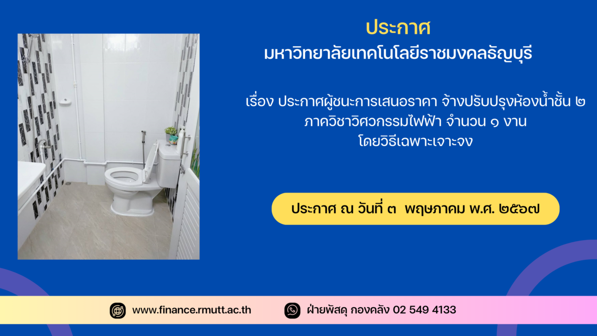 เรื่อง ประกาศผู้ชนะการเสนอราคา จ้างปรับปรุงห้องน้ำชั้น ๒ ภาควิชาวิศวกรรมไฟฟ้า จำนวน ๑ งาน โดยวิธีเฉพาะเจาะจง