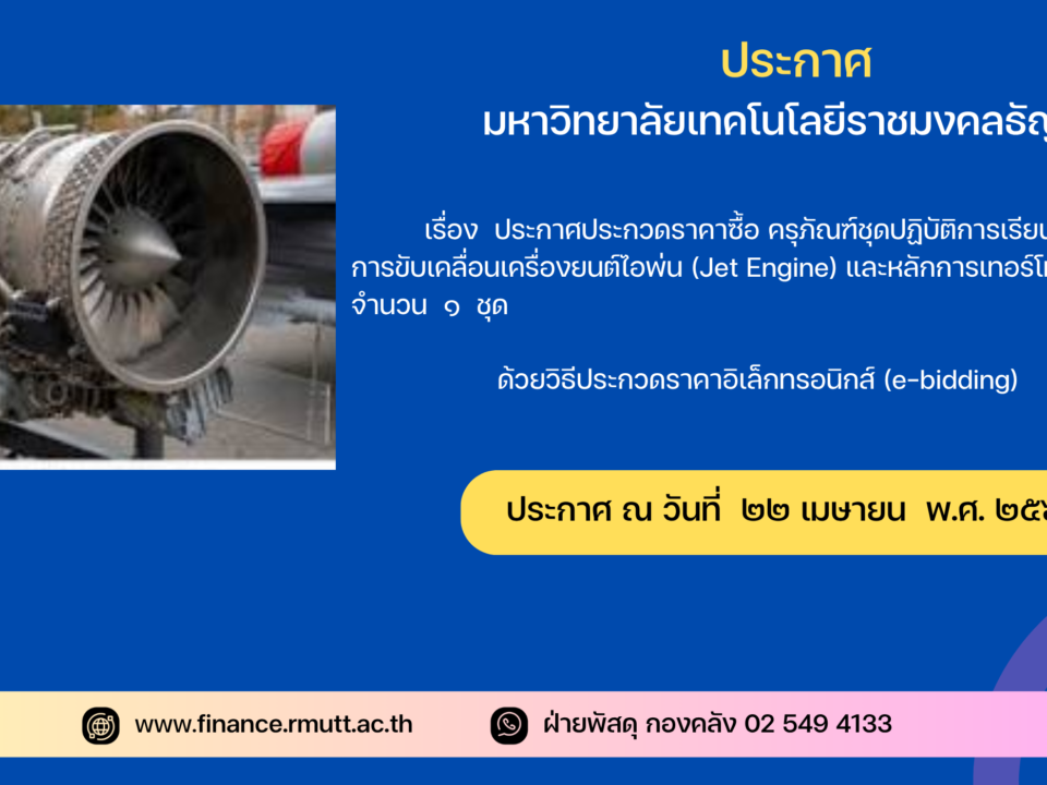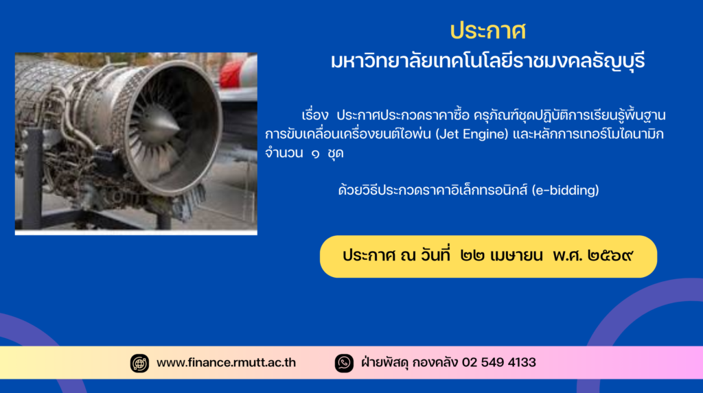 ๓. ผู้สนใจสามารถดูรายละเอียดและดาวน์โหลดเอกสารประกวดราคาอิเล็กทรอนิกส์เลขที่ งปม.26/2569 ลงวันที่ ๒๐ เมษายน พ.ศ. ๒๕๖๙ ผ่านทางระบบจัดซื้อจัดจ้างภาครัฐด้วยอิเล็กทรอนิกส์ ได้ตั้งแต่วันที่ประกาศจนถึงวันเสนอราคา ได้ที่เว็บไซต์ www.finance.rmutt.ac.th หรือ www.gprocurement.go.th