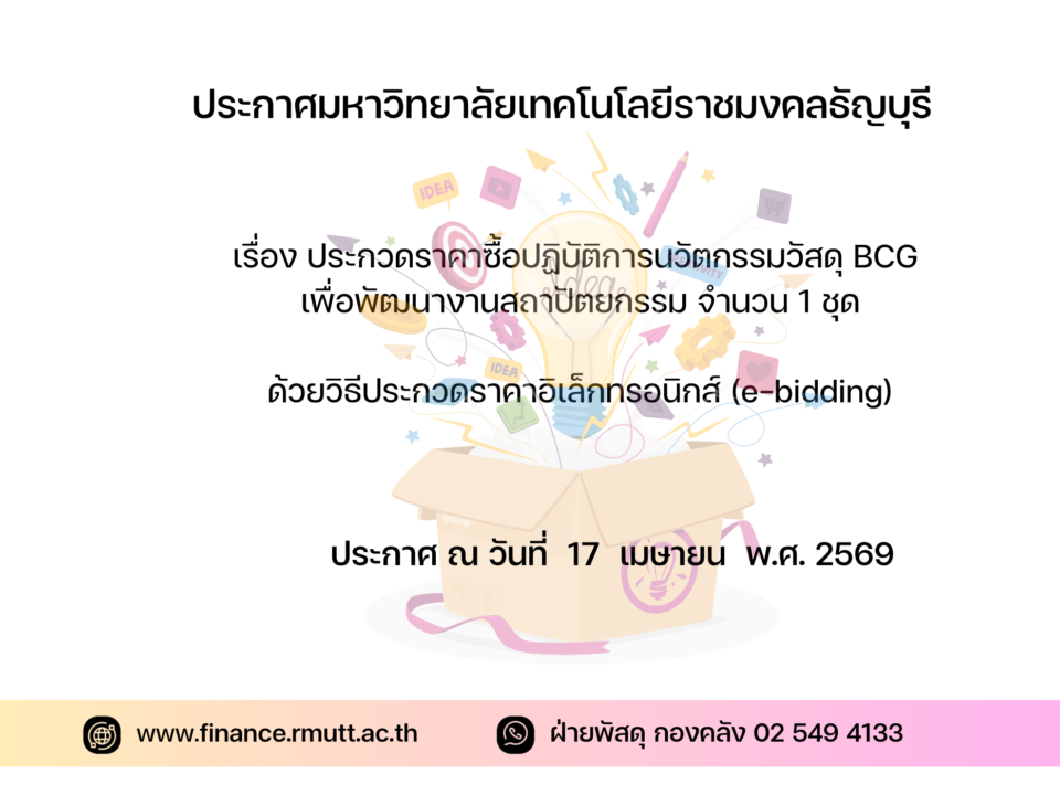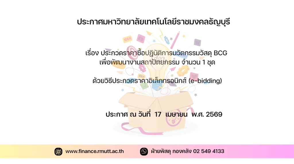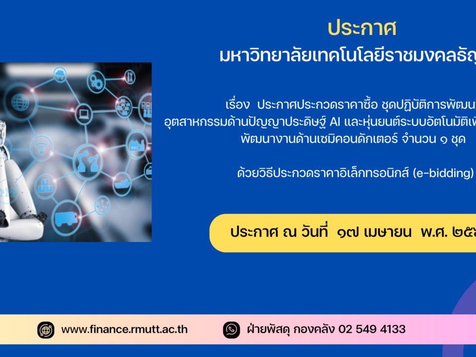 ประกาศมหาวิทยาลัยเทคโนโลยีราชมงคลธัญบุรี เรื่อง ประกวดราคาซื้อชุดฝึกปฏิบัติการยานยนต์ไฟฟ้าอัตโนมัติสมัยใหม่ด้วยระบบ Auto Pilot อัจฉริยะ เพื่อเข้าสู่ Net Zero Emission ด้วยวิธีประกวดราคาอิเล็กทรอนิกส์ (e-bidding)