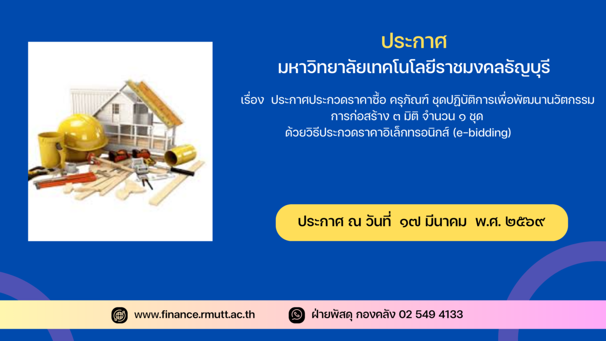 เรื่อง ประกวดราคาซื้อชุดปฏิบัติการเพื่อพัฒนานวัตกรรมการก่อสร้าง ๓ มิติ จำนวน ๑ ชุด
