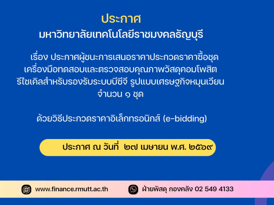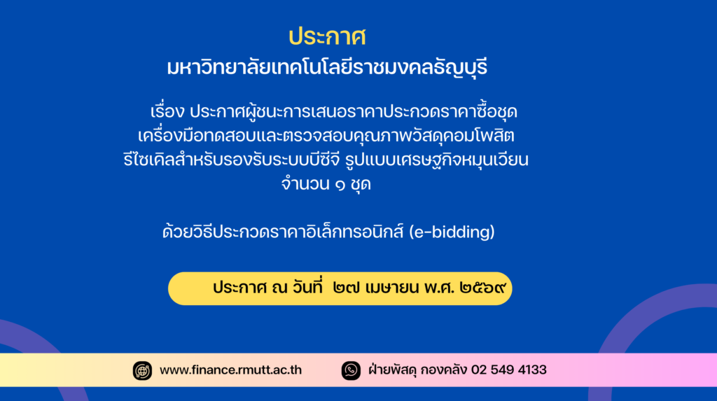 กองคลัง มหาวิทยาลัยเทคโนโลยีราชมงคลธัญบุรี ขอประกาศเผยแพร่แผนการจัดซื้อจัดจ้าง ประจำปีงบประมาณ พ.ศ ๒๕๖๗ ตามเอกสารที่แนบท้ายประกาศนี้