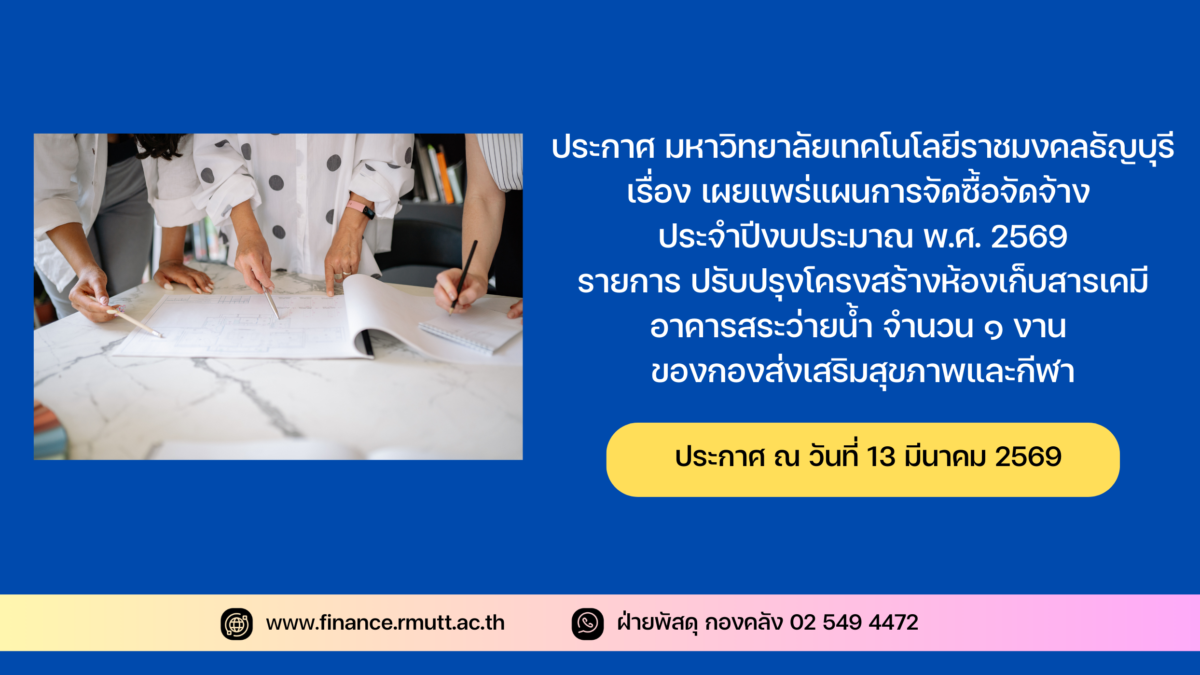 ประกาศ มหาวิทยาลัยเทคโนโลยีราชมงคลธัญบุรี เรื่อง เผยแพร่แผนการจัดซื้อจัดจ้าง ประจำปีงบประมาณ พ.ศ. 2569