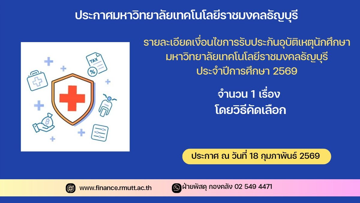 รายละเอียดเงื่อนไขการรับประกันอุบัติเหตุนักศึกษา มหาวิทยาลัยเทคโนโลยีราชมงคลธัญบุรี ประจำปีการศึกษา 2569