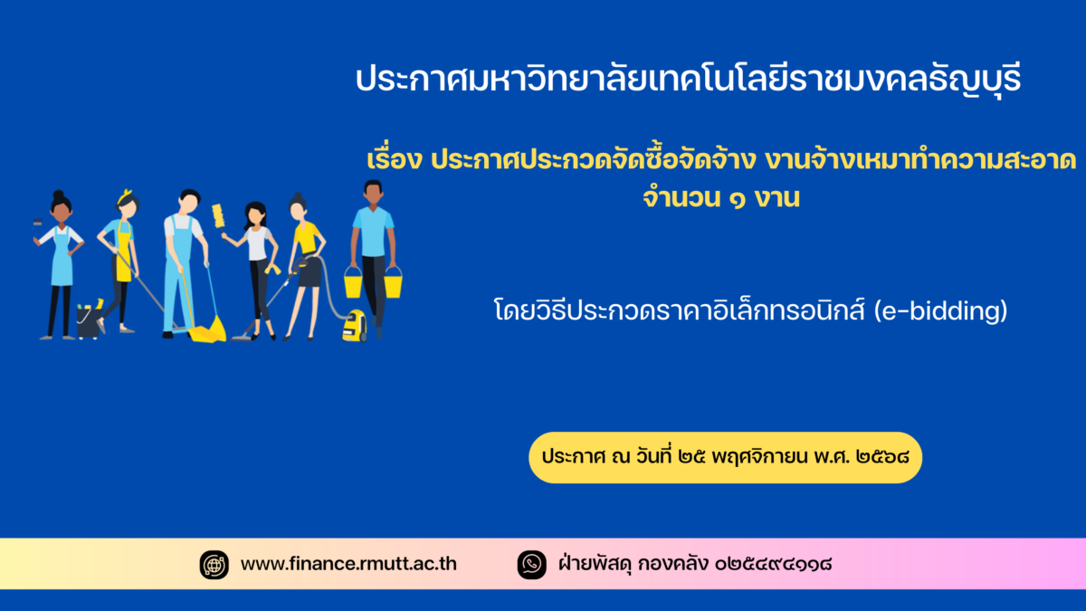 เรื่อง ประกาศประกวดราคาจ้างเหมาทำความสะอาด จำนวน ๑ งาน ด้วยวิธีประกวดราคาอิเล็กทรอนิกส์ (e-bidding)