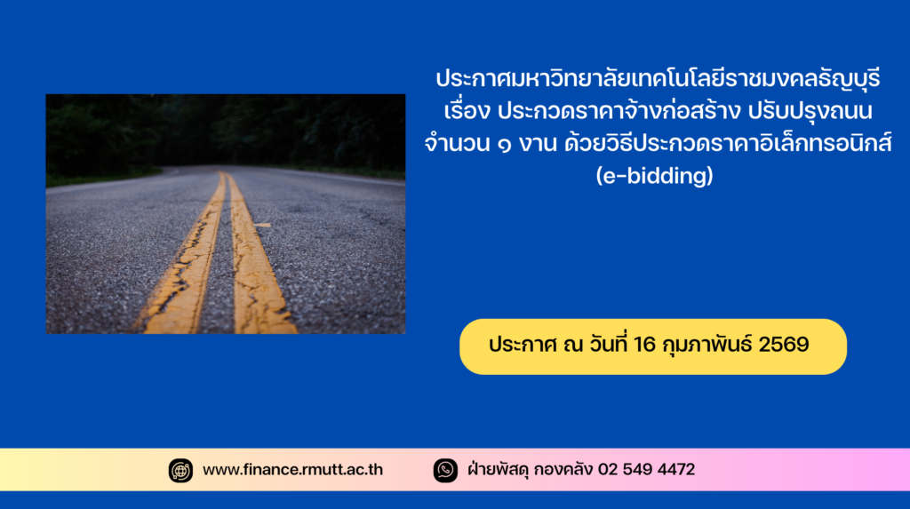 ประกาศมหาวิทยาลัยเทคโนโลยีราชมงคลธัญบุรี เรื่อง ประกวดราคาจ้างก่อสร้างปรับปรุงถนน จำนวน ๑ งาน ด้วยวิธีประกวดราคาอิเล็กทรอนิกส์ (e-bidding)