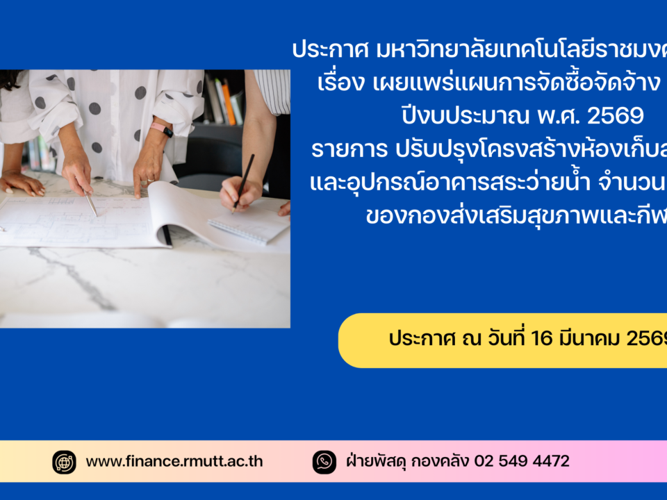 ประกาศ กองคลัง มหาวิทยาลัยเทคโนโลยีราชมงคลธัญบุรี เรื่อง เผยแพร่แผนการจัดซื้อจัดจ้างประจำปีงบประมาณ พ.ศ. ๒๕๖๙