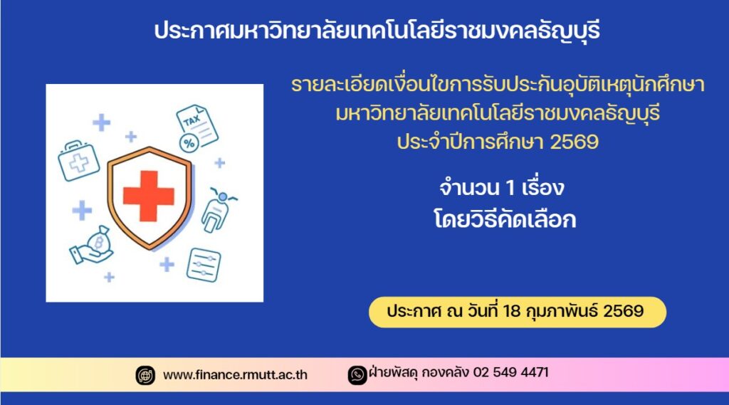 รายละเอียดเงื่อนไขการรับประกันอุบัติเหตุนักศึกษา มหาวิทยาลัยเทคโนโลยีราชมงคลธัญบุรี ประจำปีการศึกษา 2569