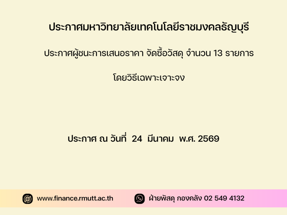ประกาศผู้ชนะการเสนอราคา จัดซื้อวัสดุ จำนวน 13 รายการ โดยวิธีเฉพาะเจาะจง