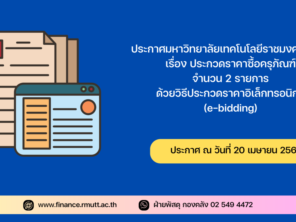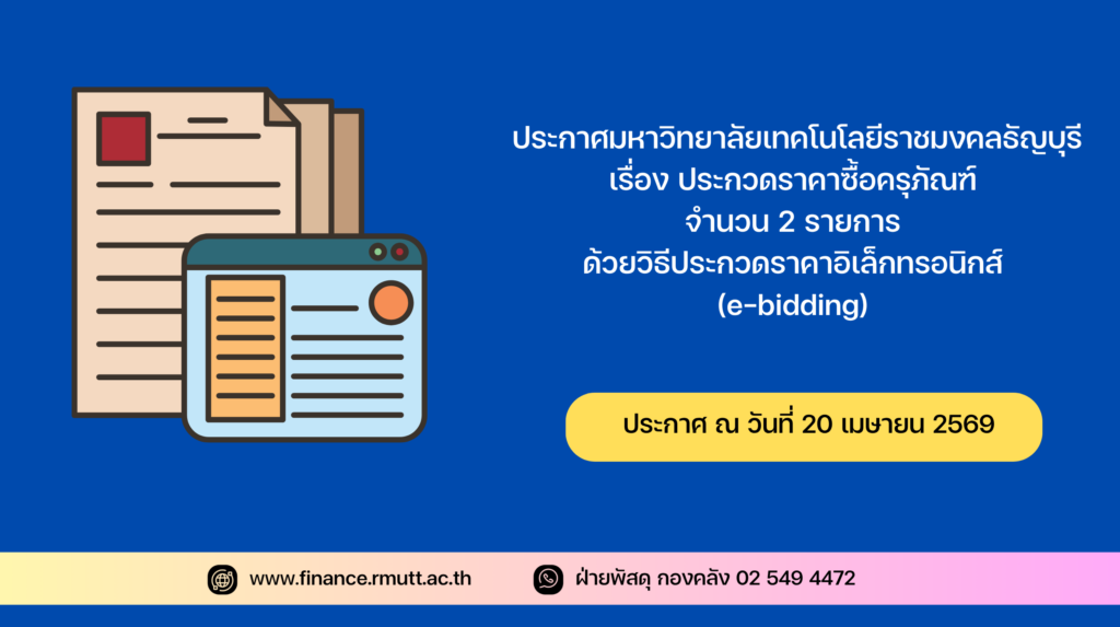 ประกาศมหาวิทยาลัยเทคโนโลยีราชมงคลธัญบุรี เรื่อง ประกวดราคาซื้อครุภัณฑ์ จำนวน ๒ รายการ ด้วยวิธีประกวดราคาอิเล็กทรอนิกส์ (e-bidding)
