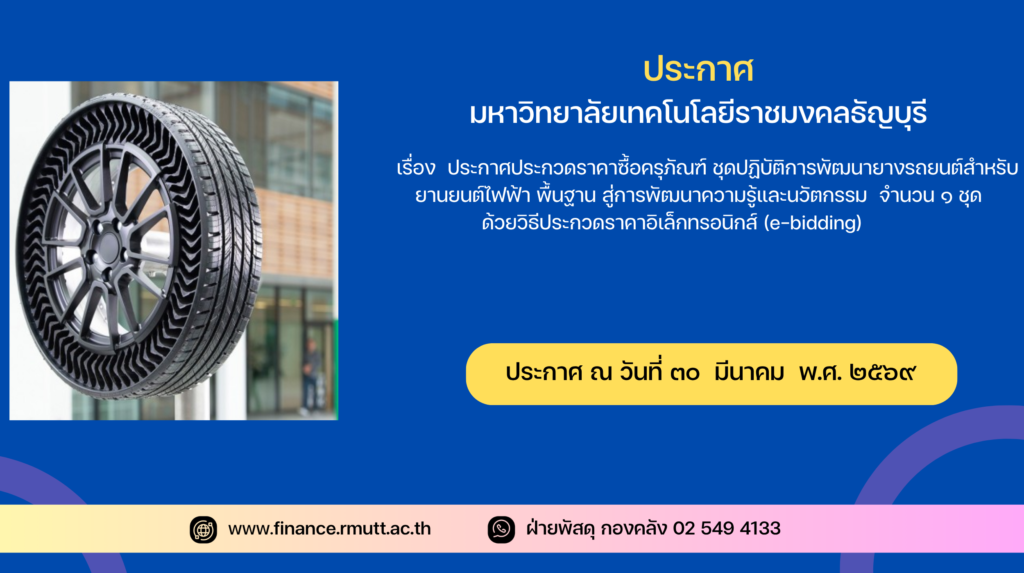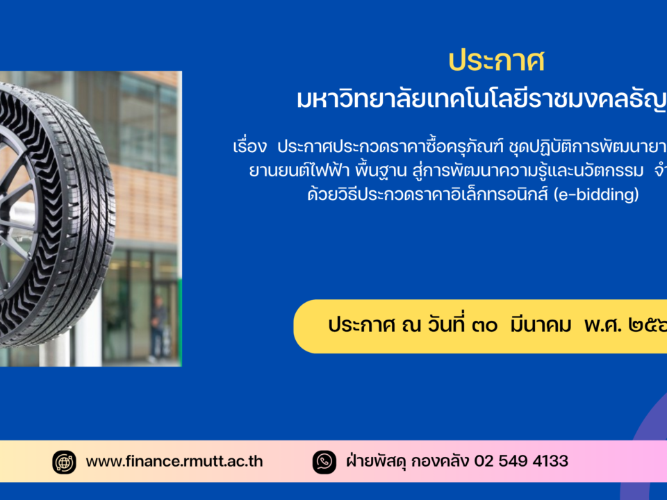 ประกาศประกวดราคาซื้อชุดปฏิบัติการพัฒนายางรถยนต์สำหรับยานยนต์ไฟฟ้า พื้นฐานสู่การพัฒนาความรู้และนวัตกรรม จำนวน ๑ ชุด ด้วยวิธีประกวดราคาอิเล็กทรอนิกส์ (e-bidding)