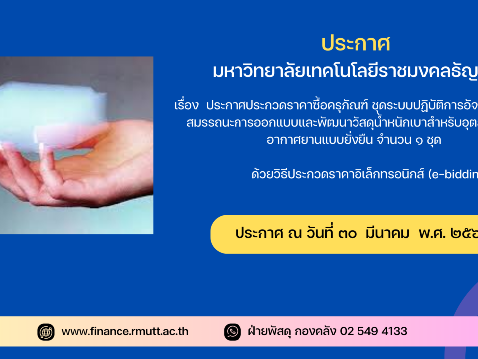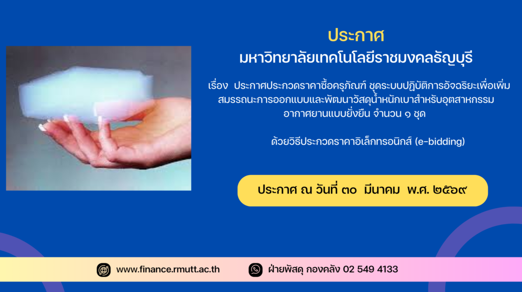 ประกาศประกวดราคาซื้อชุดระบบปฏิบัติการอัจฉริยะเพื่อเพิ่มสมรรถนะการออกแบบและพัฒนาวัสดุน้ำหนักเบาสำหรับอุตสาหกรรมอากาศยานแบบยั่งยืน จำนวน ๑ ชุด ด้วยวิธีประกวดราคาอิเล็กทรอนิกส์ (e-bidding)