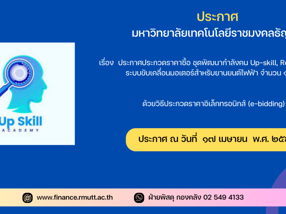 ประกาศประกวดราคาซื้อชุดพัฒนากำลังคน Up-skill, Re-skill ในด้านระบบขับเคลื่อนมอเตอร์สำหรับยานยนต์ไฟฟ้า จำนวน ๑ ชุด ด้วยวิธีประกวดราคาอิเล็กทรอนิกส์ (e-bidding)